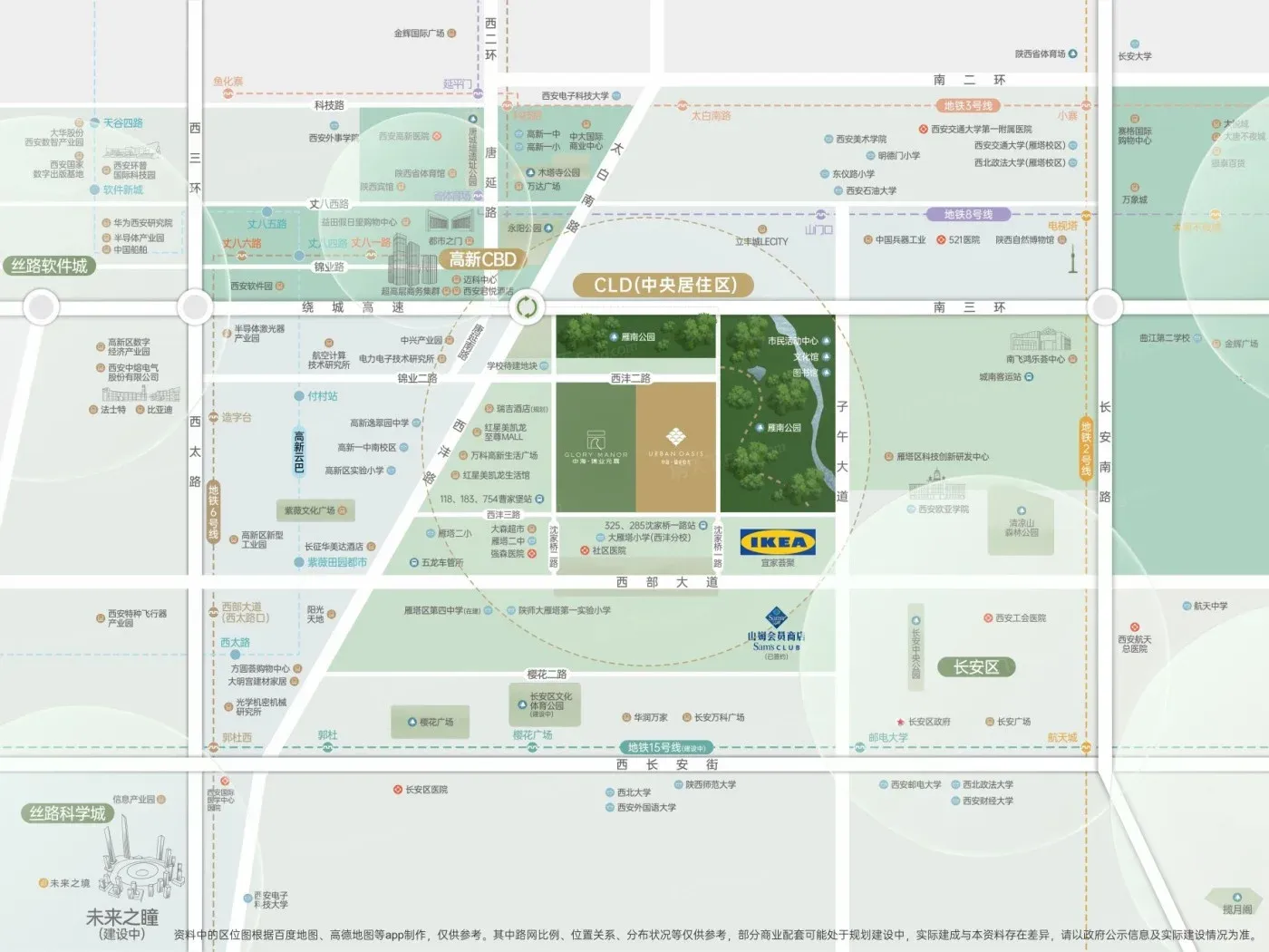 虽然顶着“三环外”标签,西沣路实属城南硬核发展带。沈家桥一路直通锦业路商圈,实测自驾25分钟飙到高新CBD。周边陕建/绿城等新盘扎堆,妥妥的区域新C位。