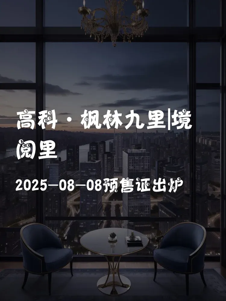 高新区纯新盘高科·枫林九里|境阅里于8月8日正式取得市住建预售字第2025357号许可证!这意味着科技四路板块即将迎来全新住宅供应,项目紧邻高新区第十五小学,主推建面约89-143㎡户型,准备在高新置业的可以重点关注啦~