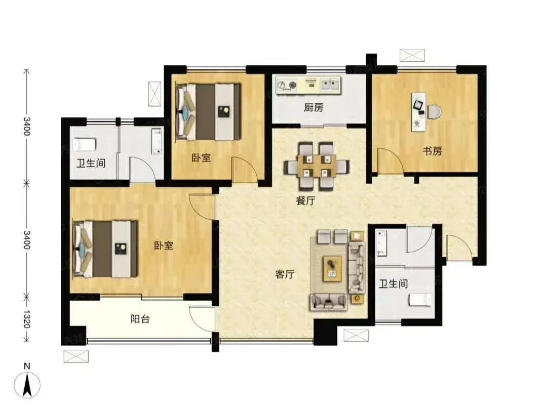 户型推荐97-104-115平三居室