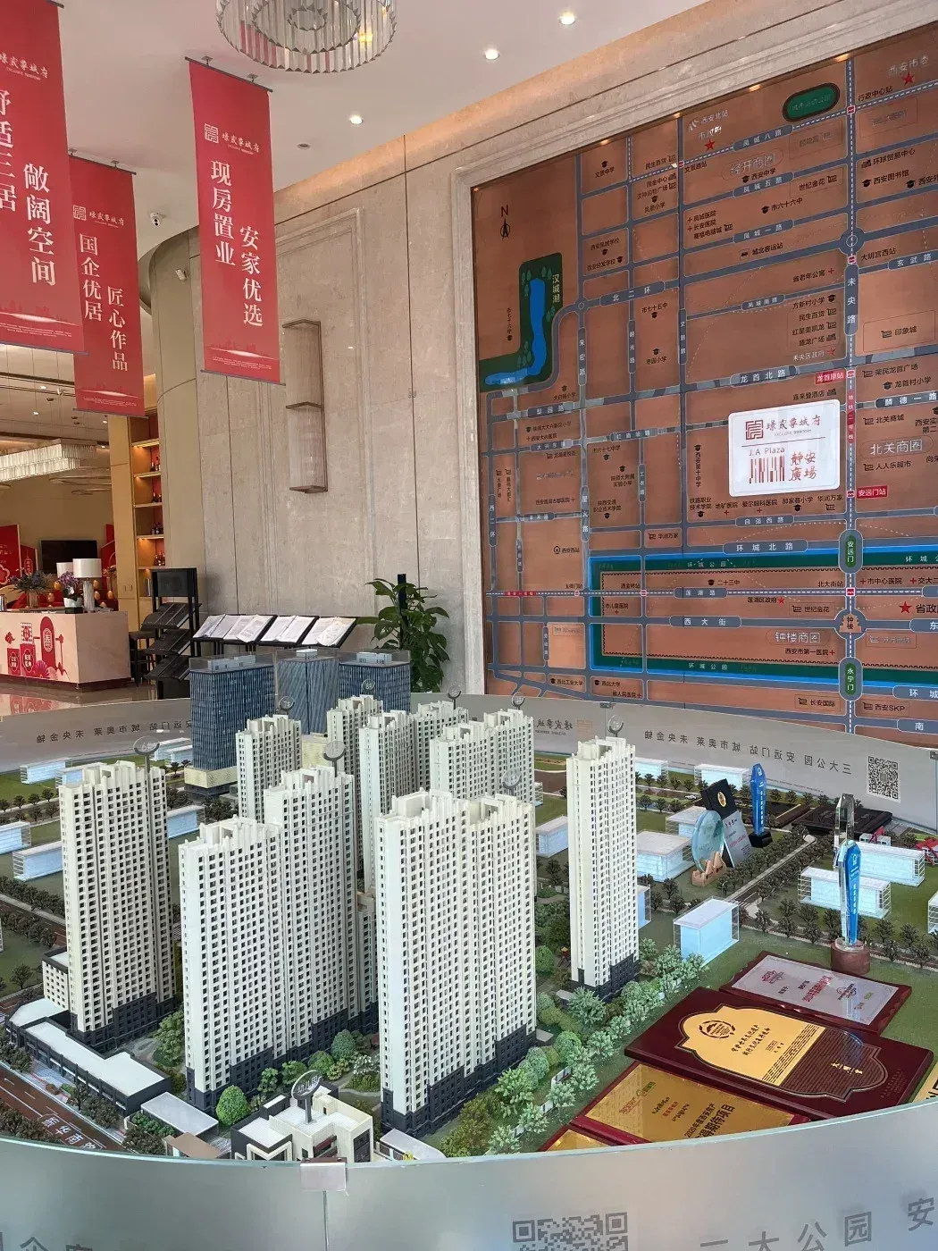 今天实地探访北关热门新盘【璟宸尊域府】!项目位于振华路与北关正街交汇处,现场实拍多张工程进度图👀~国企开发背景+地铁沿线属性,目前8栋板楼已全面封顶,外立面采用现代简约风格,公共区域带装修,预计2024年底交付!售楼处沙盘显示37%绿化率的中庭园林,地下1500个车位规划也同步曝光🚗💨