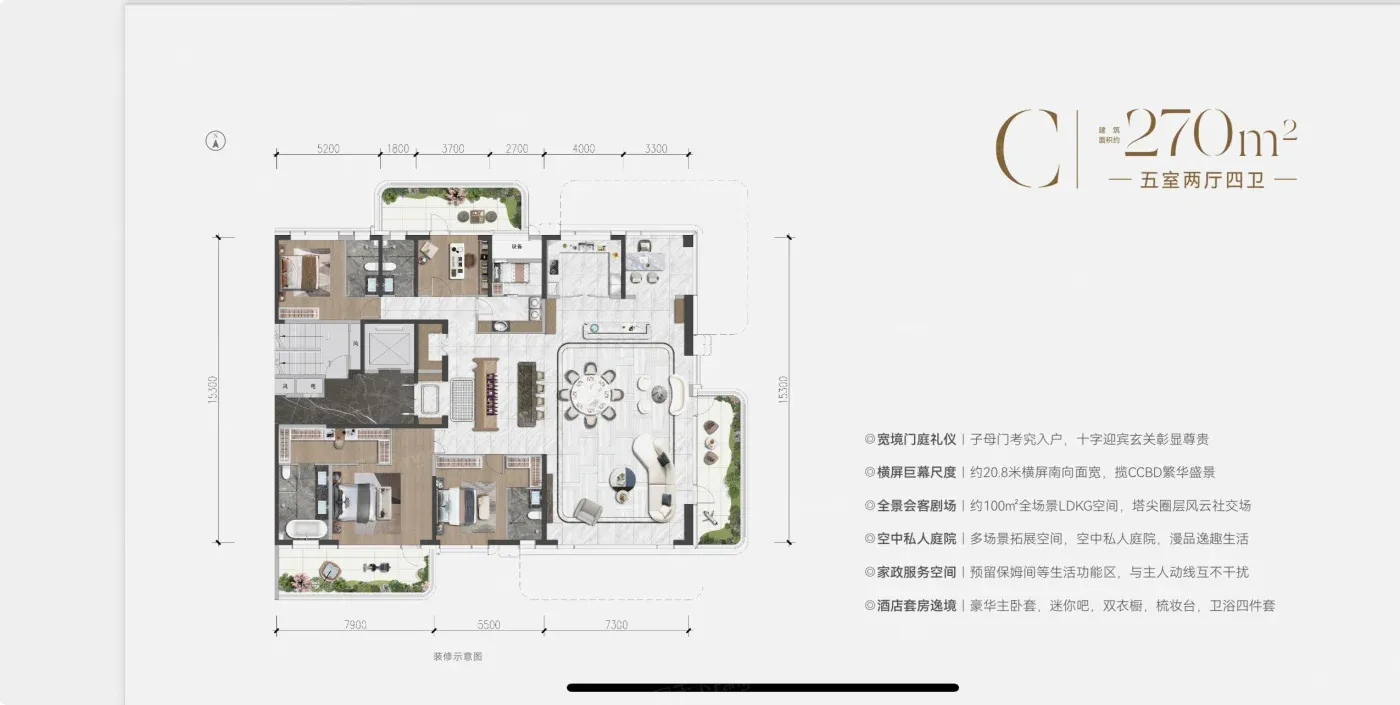 ③ 户型是真舍得下本:251㎡四房双套房设计,第四代住宅标配的空中花园,双联阳台进深超1.8米。不过2.8容积率在改善盘里不算特别低。
