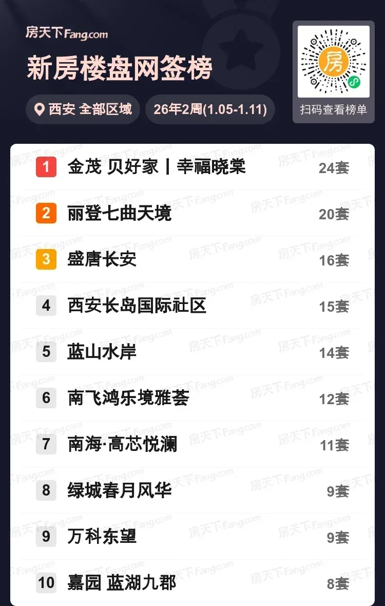 周成交量直击:金茂贝好家丨幸福晓棠以24套领跑,丽登七曲天境20套紧咬其后,盛唐长安以16套稳居三甲,成交数据揭示当下购房者真实选择。值得关注的是,前两名楼盘成交量占总榜单近四成,显示出市场对品质项目的认可度持续攀升。