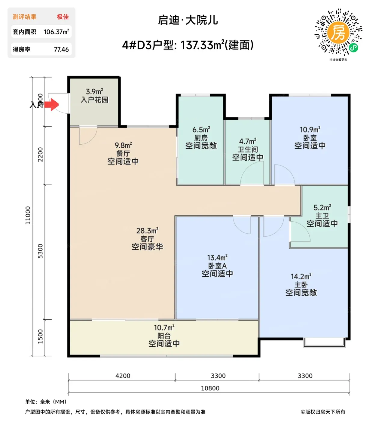 小区容积率4.05,规划15-26层高层建筑,绿化率为区域平均水平。137㎡主力户型采用双卧朝南设计,配备10.7㎡景观阳台,但得房率较同类项目稍低。需重点关注部分户型卫生间无窗设计,建议实地考察楼栋采光情况。