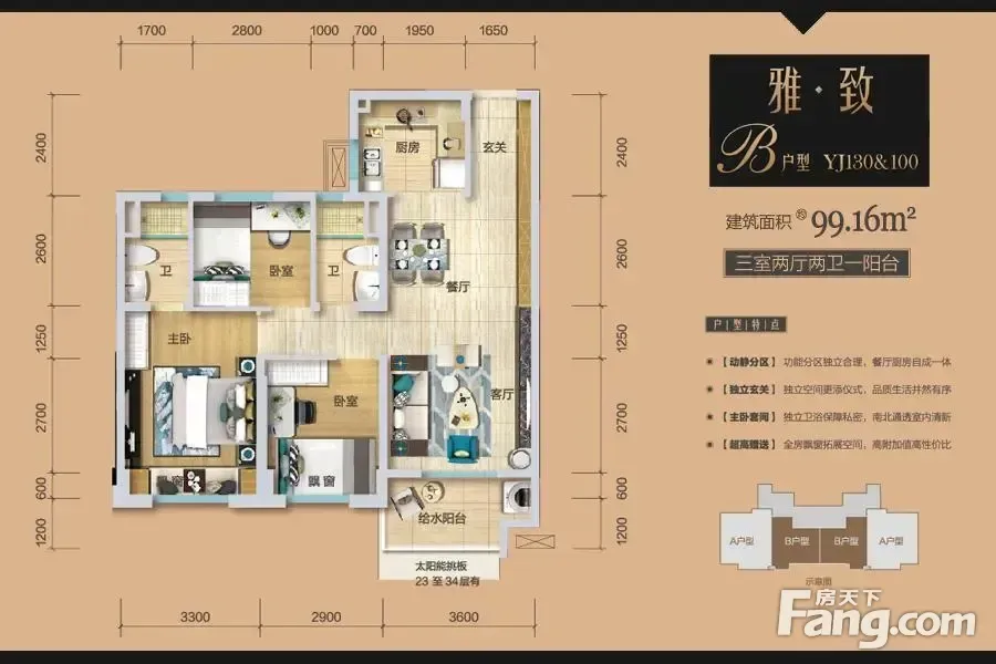 - **户型能打**:99㎡做成了3室2厅,主卧能摆下1米8大床还带飘窗,次卧改书房or儿童房都🉑️!
