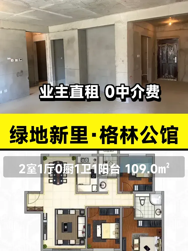 最近收拾自家房子准备出租,真心觉得这套毛坯房特别适合想长租改造的小伙伴!🏠 我家在绿地新里·格林公馆,109平的大两居,南北通透的户型,阳光从早晒到晚都不带停的~