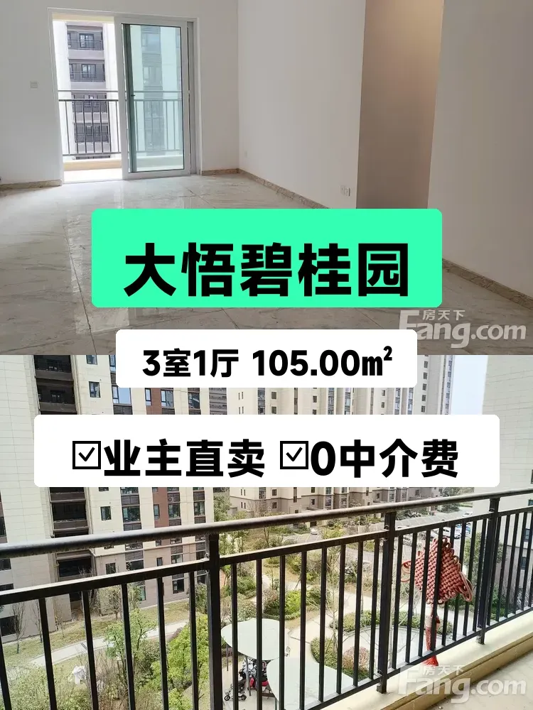标题:自家精装三房急售!大悟碧桂园黄金楼层仅46万💰