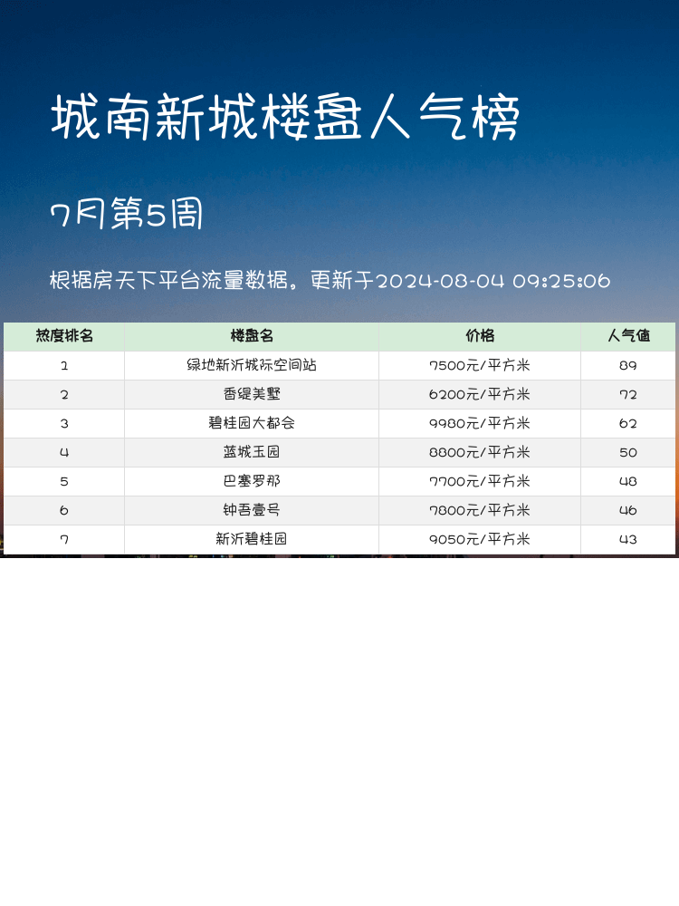 🏠想在城南新城置业吗?那就一定要关注人气楼盘榜单啦!🏆在当前市场中,选对楼盘不仅能提高生活品质,还能有更好的投资回报。关注这些人气楼盘,不仅能了解市场动向,更能找到适合自己的理想家园❤️