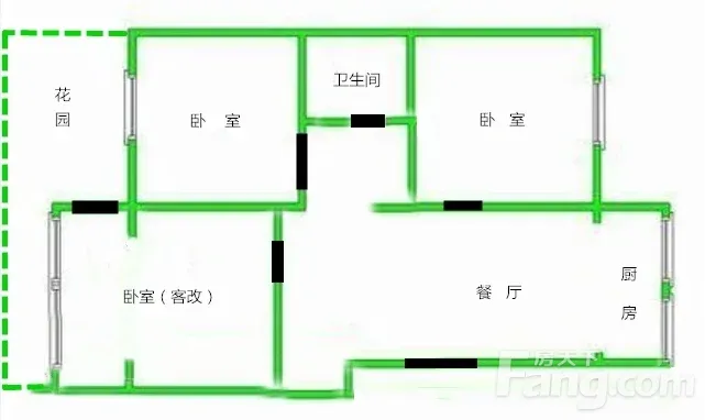 户型是3室1厅1厨1卫1阳台带小院子南北朝向