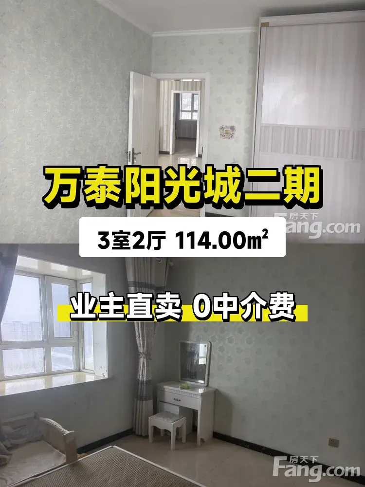 ✨房子在万泰阳光城二期,2014年的楼龄很新!23层(共24层)的南向户型🌅,每天阳光洒满客厅的感觉真的太治愈了~114㎡做成了三室两厅,主卧能放下2米大床还带整面墙衣柜👗,二胎家庭或老人同住都够用!