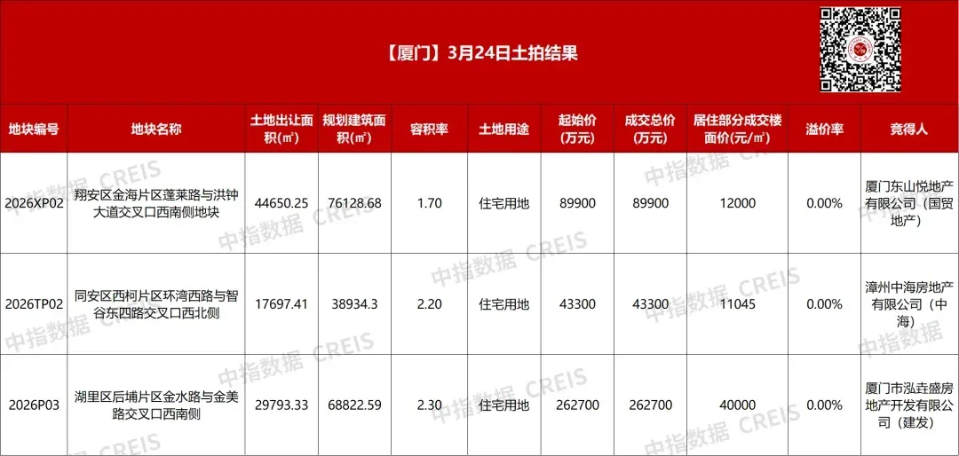 🏠 厦门,3月24日土拍资讯出炉!