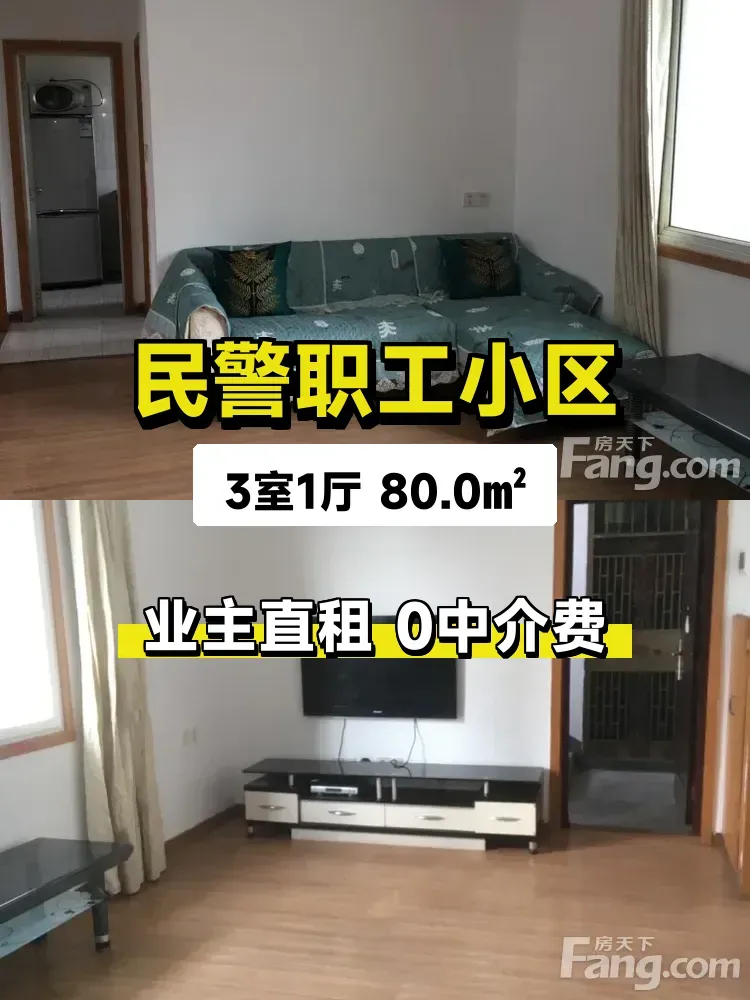 标题:自家民警职工小区3室1厅出租,南北通透才700/月!