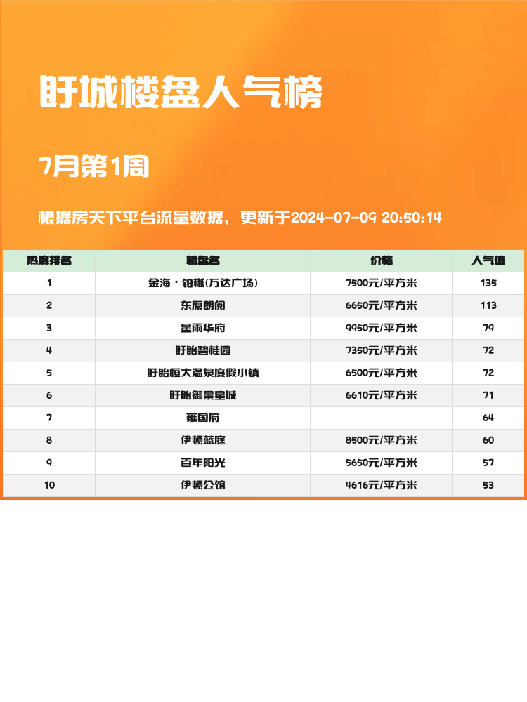 🎉排名第1名: 金海·铂樾(万达广场)🎉