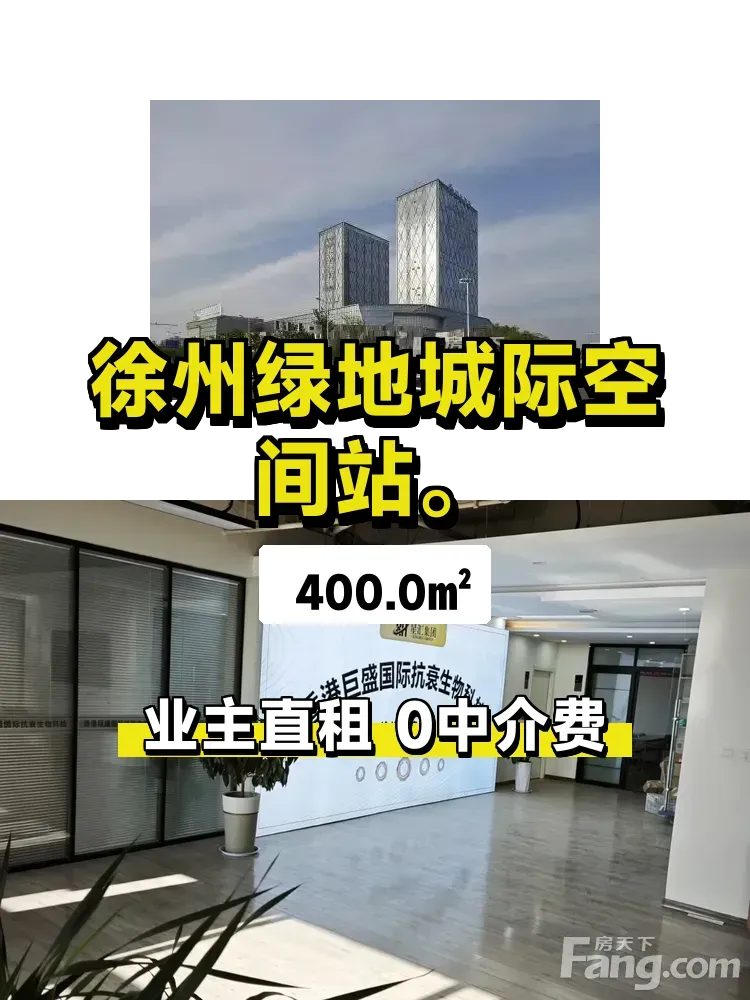 标题:自家400平甲级写字楼出租!绿地城际空间站黄金楼层🌇