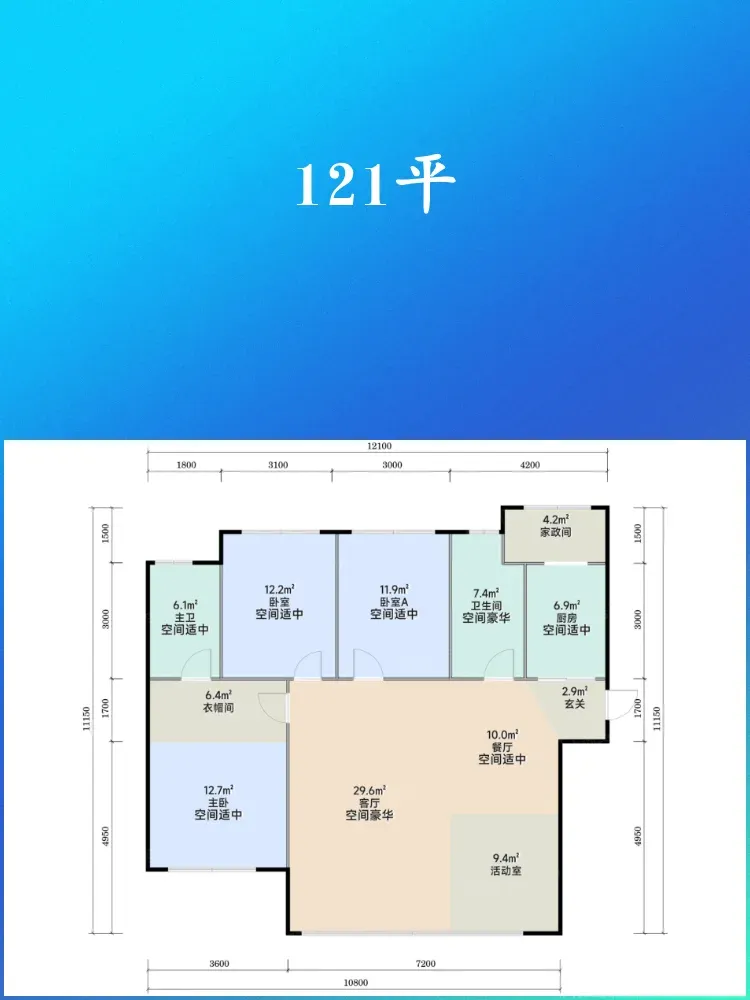 ✓ 双卫配置+6㎡附赠空间,二胎家庭或三代同住都够用👨👩👧👦 主卧套房自带飘窗,躺看星空不是梦🌌