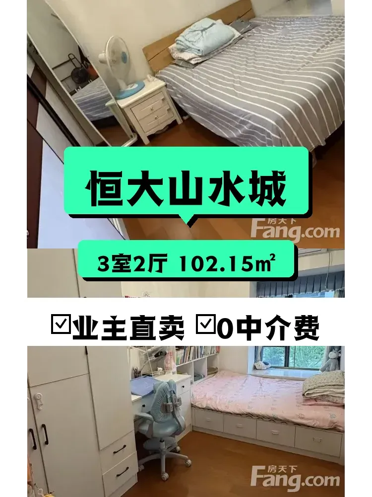 标题:自家恒大山水城三居室急售!南向采光超棒🌞