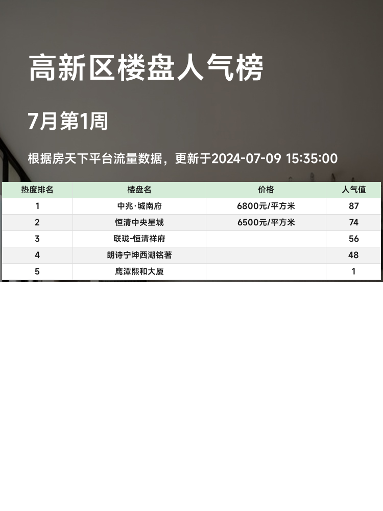 🏠 在如今的房产市场,选择一个合适的楼盘至关重要✨。关注人气楼盘榜单,可以帮助购房者更好地了解市场上的热门选择🌟,从而做出最优决策。目前,高新区的一些楼盘凭借其优越的地理位置、完善的配套设施以及合理的价格,备受购房者青睐🏙️。让我们来看看高新区热度最高的前三名楼盘吧!