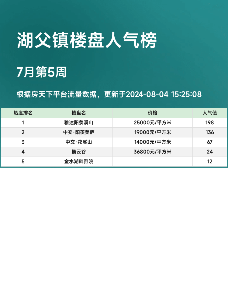 在当下的房地产市场中,如何选到一个适合自己的居住地至关重要💡。湖父镇的人气楼盘榜单为购房者提供了宝贵的信息,帮助你在众多选择中找到最佳的居住地🏡。了解当前市场的热门楼盘,能够更好地把握购房机会,以下为大家带来湖父镇人气楼盘榜单前三名的测评📊。