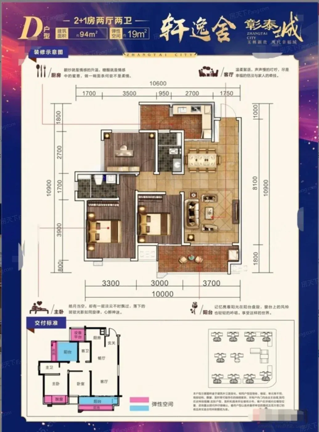 标题:自家玉林彰泰城94平三房急售!南北通透25楼🌿