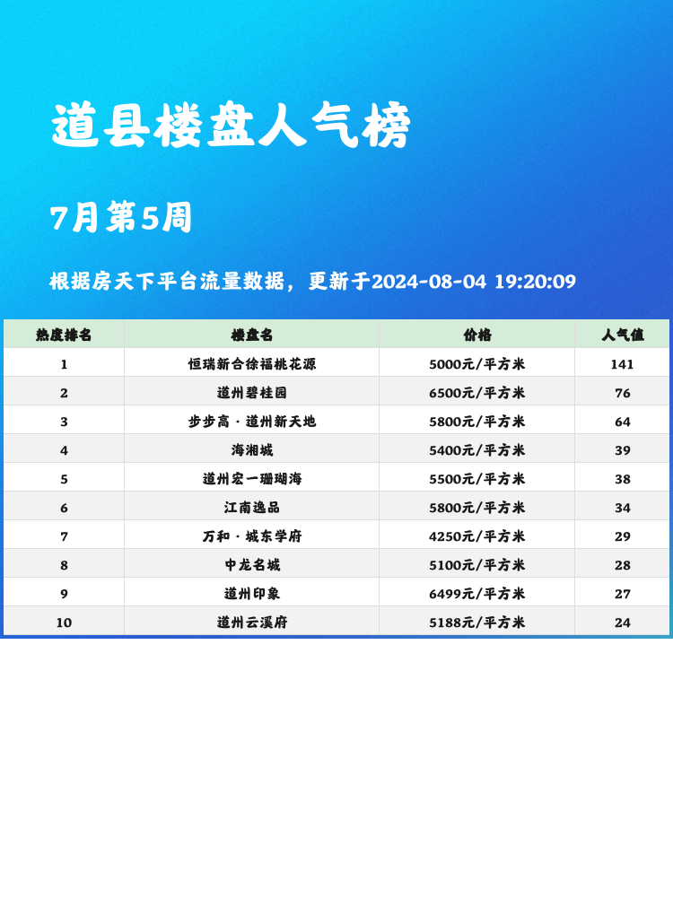 希望这些楼盘信息对大家购房有所帮助,让你买到心仪的房子🏡。关注道县人气楼盘榜单,为你的购房之旅保驾护航🚀。