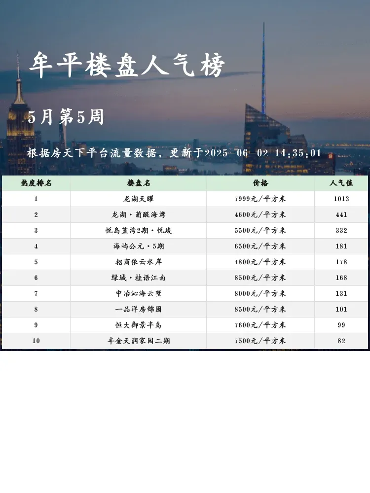 买房选对区域很重要!🏡 牟平作为烟台热门置业板块,凭借优越的海景资源和亲民价格吸引众多购房者👀 这份人气楼盘榜单,从价格、配套、户型等维度帮你筛选出真正值得买的楼盘,快来看看有没有你的心动之选💓