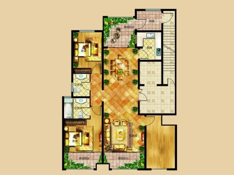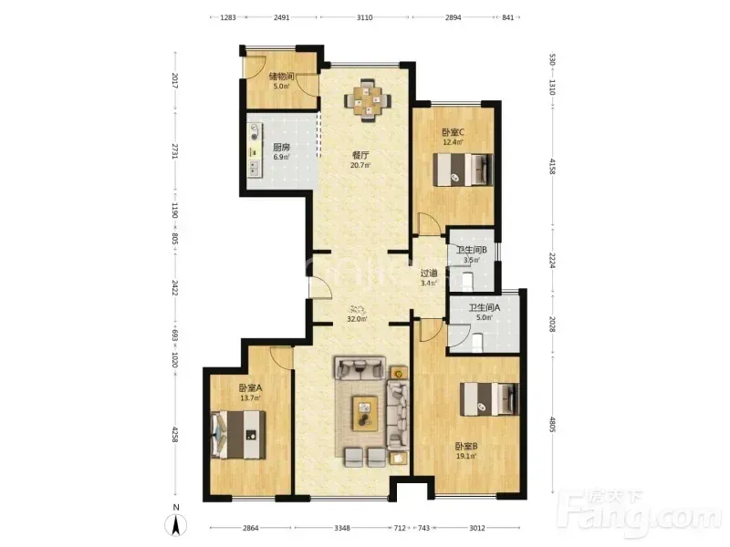 ✅ 三个卧室都超大!主卧放完1.8米大床还能摆下梳妆台