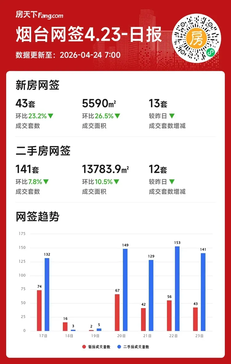 成交套数:141套 ↓7.8%(较昨日减12套)
