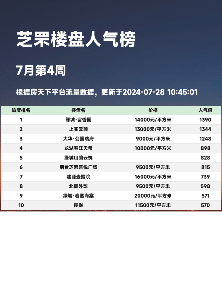 🏠 在现如今的房地产市场中,选择一个合适的楼盘至关重要。人气楼盘榜单不仅能帮你了解市场热度,还能提供丰富的参考信息,让你在购房时更加胸有成竹。下面请跟随我一起来看看芝罘区的热门楼盘榜单,看看它们为购房者带来了哪些独特的亮点。