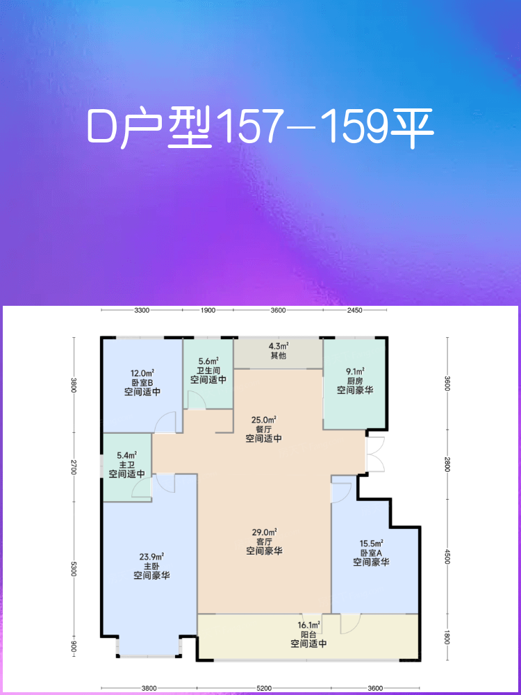 🌟 **D户型 157-159平方米**