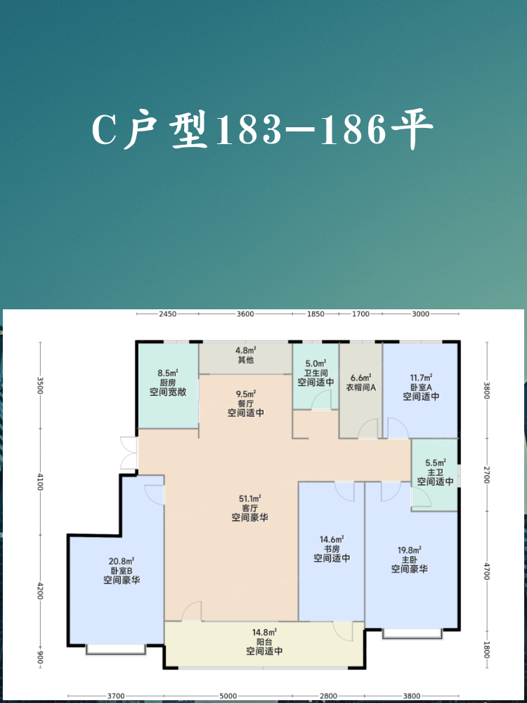 🌟 **C户型 183-186平方米**