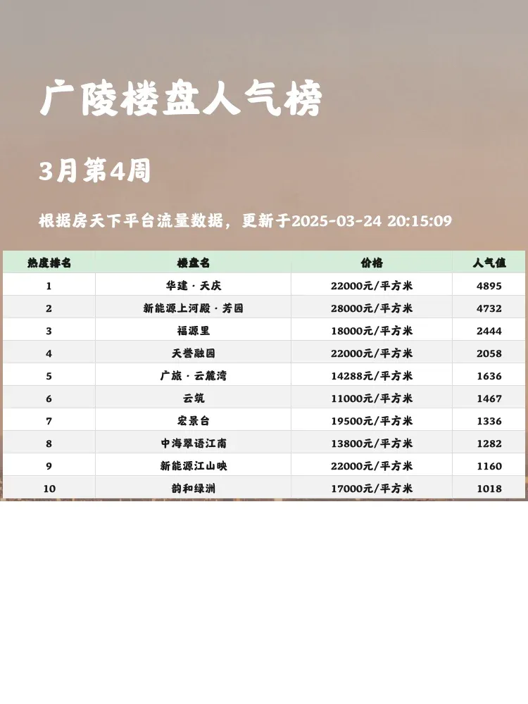 在买房这件事上,选对区域和楼盘至关重要!广陵区作为扬州的热门板块,近期人气楼盘榜单新鲜出炉,榜单不仅反映了市场热度,更揭示了购房者的真实需求。跟着榜单选房,既能避开踩坑,又能精准锁定高性价比好盘!一起来看看前三名都有哪些亮点吧👇