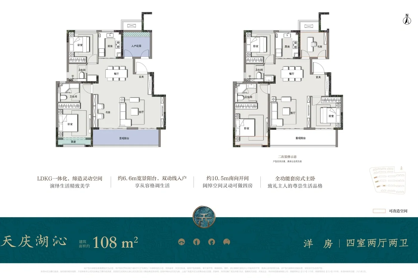 实测发现华建·天庆确实有硬核实力:1.35容积率的洋房住区配上35%绿化率,把「低密生活」刻进DNA。江阳路与渡江路交汇处的位置,步行800米到荷花池公园晨跑,周末带娃去南门码头感受运河文化,倒是挺符合扬州人"慢生活"的调性。108㎡户型做成了功能齐全的三房,飘窗改咖啡角的网红设计这里也能实现。