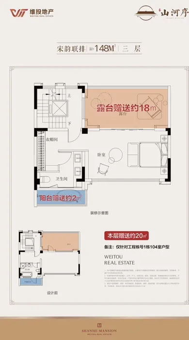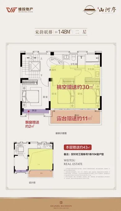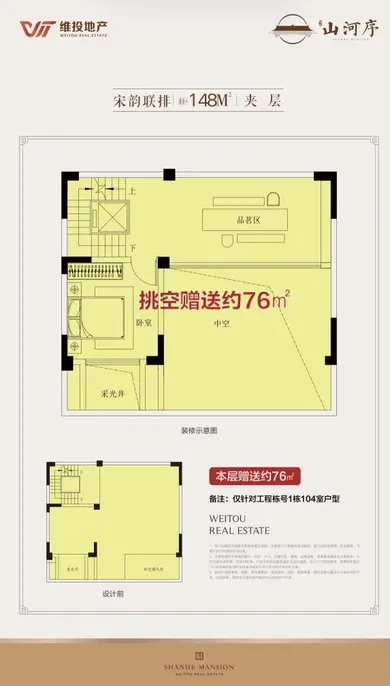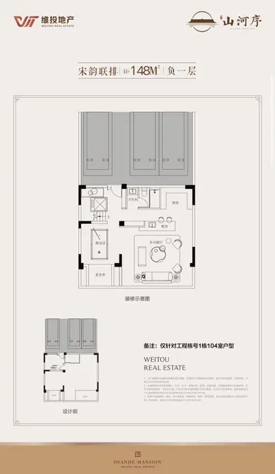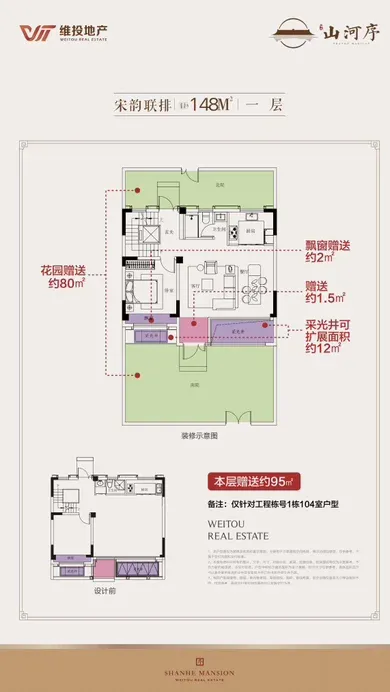 联排148平米,整体使用面积可达400平米,为三开间,大面积挑空,超大露台和超大花园设计,每户配有2-4个私家车位,并且电梯直通地下车库,整体舒适度高,私密性强