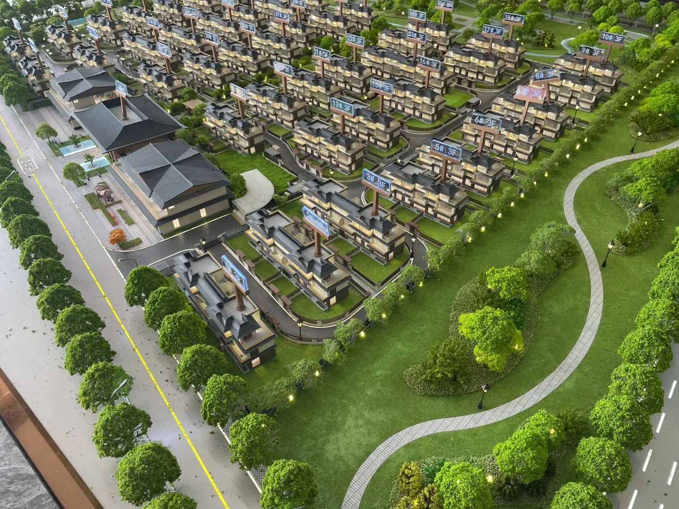 中式建筑美学:采用新中式建筑风格,坡屋顶与镂空花窗元素凸显传统韵味,适合偏好文化质感的改善客群。