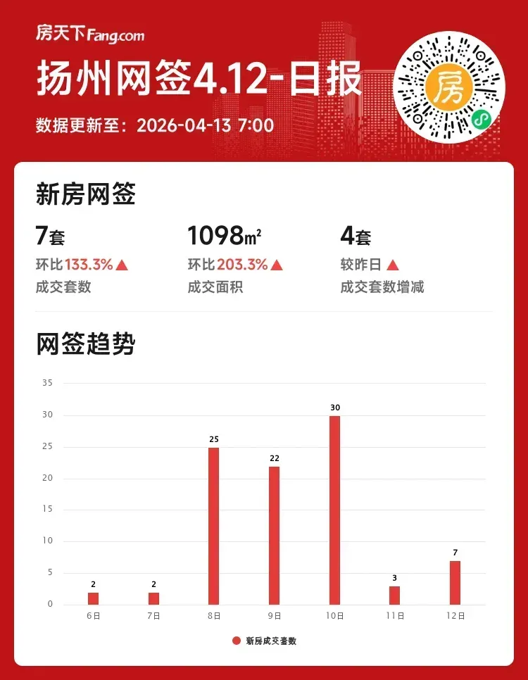 成交套数:7套 ↑133.3%(较昨日增4套)