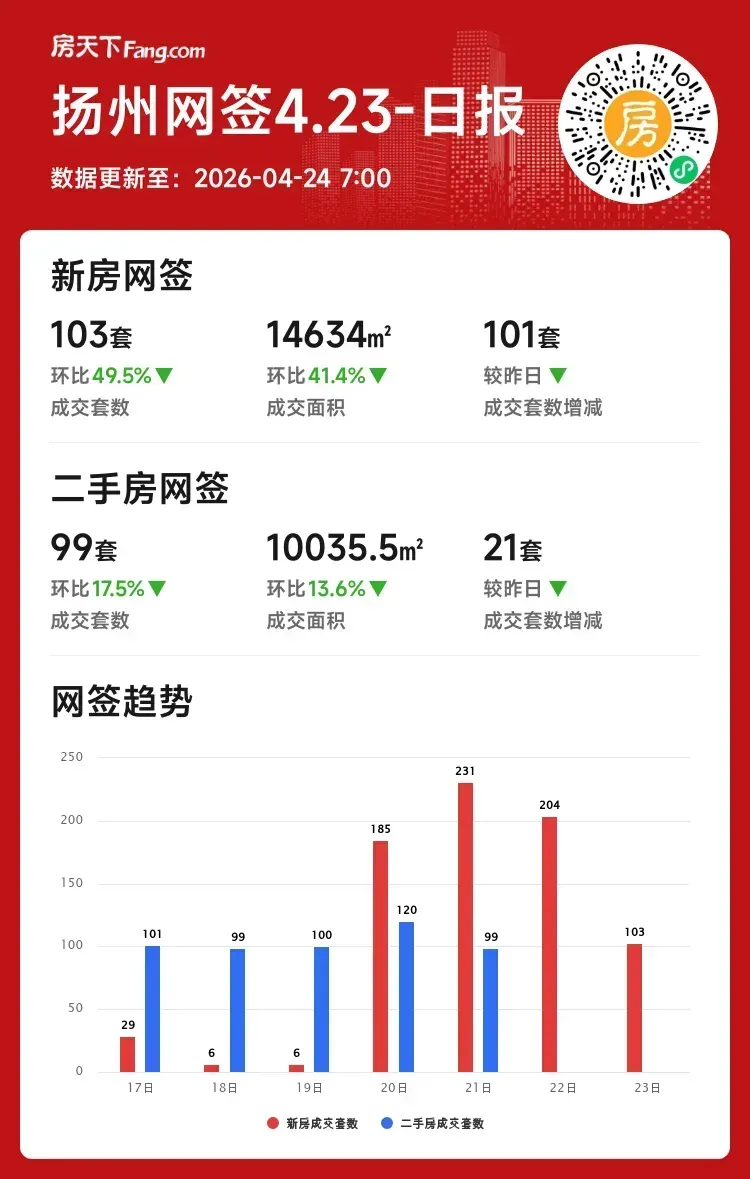 成交套数:103套 ↓49.5%(较昨日减101套)