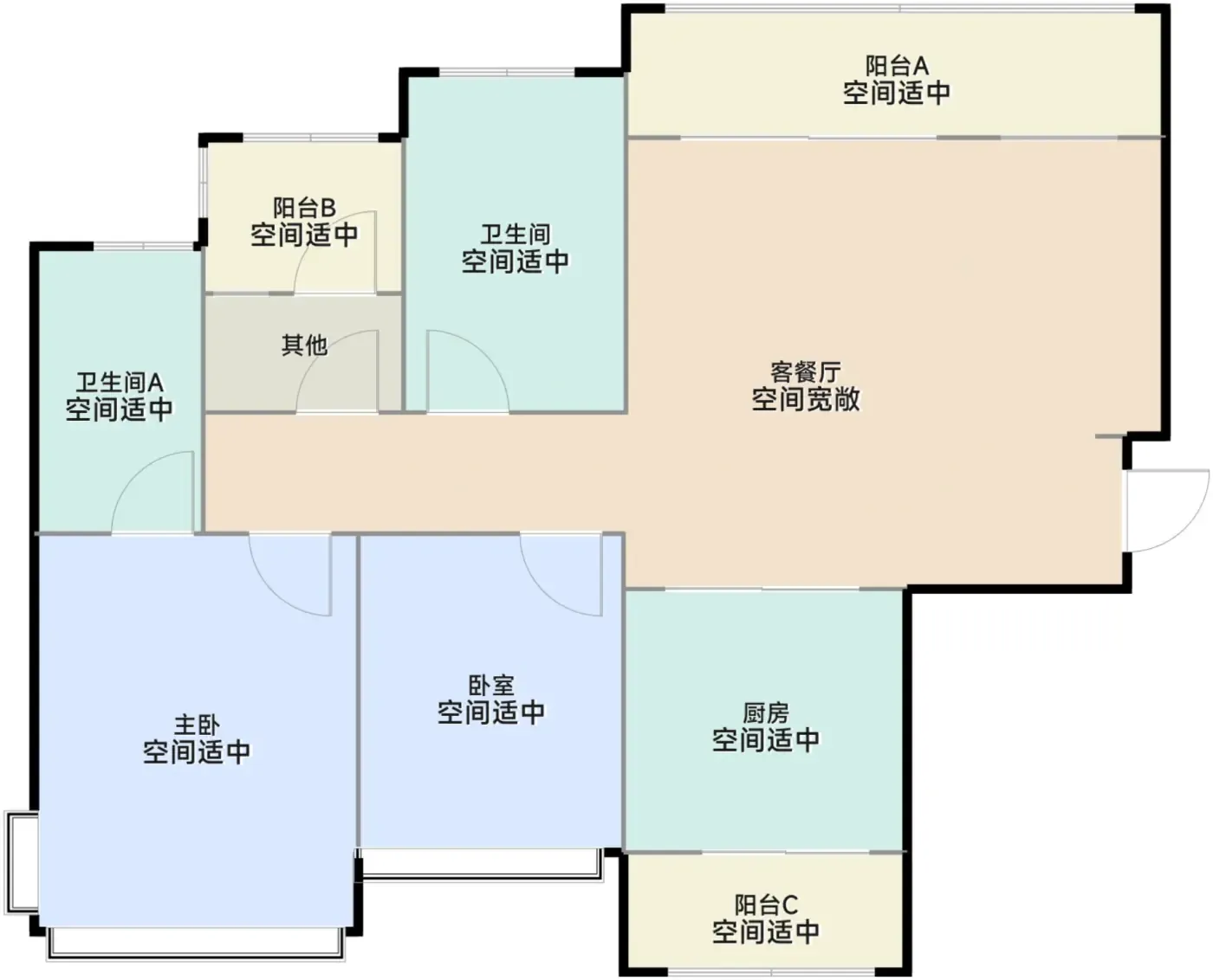 实测动静分区合理,瑜伽垫展开时客厅还有2米过道。