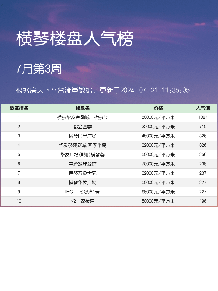 这就是横琴区域的前三名人气楼盘测评啦!希望对大家购房有所帮助😘。如果你也在横琴买房的路上,这些信息绝对值得收藏!