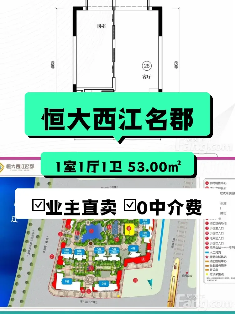 鼎湖 恒大西江名郡 1室1厅 53.00㎡ 20万