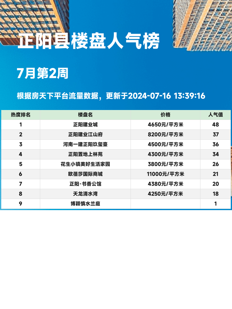🏠 正阳县的购房者们注意啦!选择一个好楼盘🏡,不仅能享受高质量的生活🌈,还能确保投资的保值增值📈。当前市场买房选房的核心逻辑是:地段📍、配套🛍️以及价格合理性💰。今天给大家带来的是正阳县最新的人气楼盘榜单📊,让你轻松掌握购房信息,一起来看看都有哪些楼盘上榜吧!