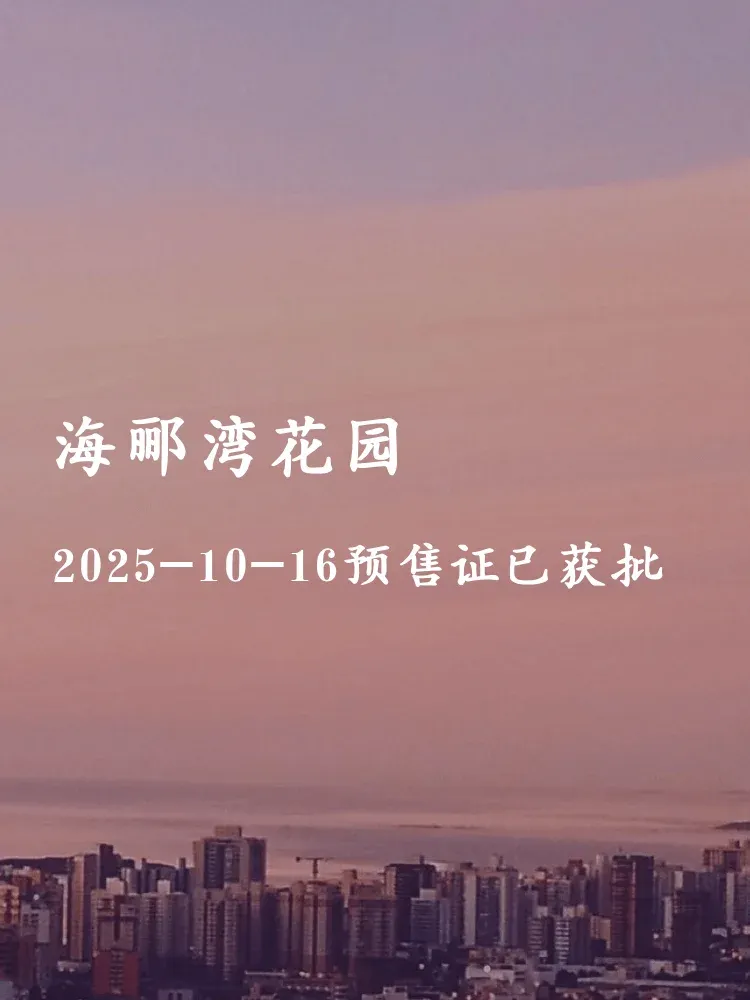 海郦湾花园14号楼已于2025年10月16日正式取得预售许可证(编号:001-440884-2025-00019-7)✨!项目位于海滨大道中63号,容积率3.5,绿化率35%,主打滨海生活概念🌊。想上车的朋友可以开始关注啦~