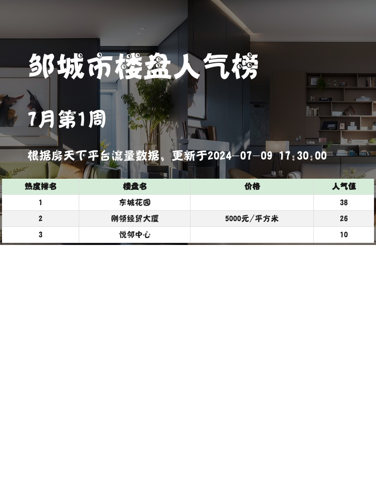 📊 在如今的房产市场中,选择一个适合自己的楼盘显得尤为重要。人气楼盘榜单不仅能为购房者提供真实的数据支持,还能够帮助大家理性判断、做出明智的选择。接下来,我们就来看看邹城市的三大人气楼盘吧👇。