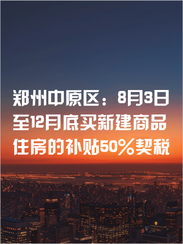 具体为自2023年8月3日起至2023年12月31日期间在中原区购买新建商品住房且在中原区完成契税缴纳(以购房合同网签时间为准,不限户籍)并按时申报补贴的,按照契税总额的50%给予补贴。对于2023年8月3日前(不含8月3日)在中原区购买商品房(不含二手房)及2023年8月3日后购买商业用房(不含二手房)但尚未缴纳契税的房屋所有权人,自2023年7月1日至2023年12月31日期间在中原区缴纳商品房契税并按时申报补贴的,按照所缴纳契税总额的20%予以补贴。(与青年人才购房契税补贴政策不重复享受)