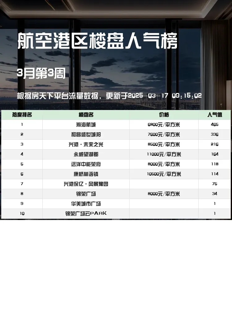 在买房这件大事上,选对区域和楼盘至关重要!🏠 航空港区作为郑州的热门板块,吸引了众多购房者的目光。今天为大家带来航空港区人气楼盘榜单,帮你快速锁定心仪好房!这份榜单不仅反映了市场热度,更从价格、配套、户型等多维度为你提供实用参考,助你轻松做出明智选择!💡