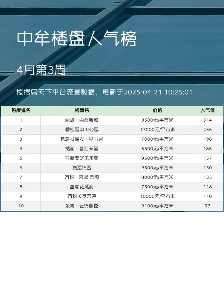 买房选盘看榜单,数据不会说谎!🔥中牟最新人气楼盘排行反映真实市场热度,9500元/㎡起的亲民价盘与17000元/㎡的改善盘同台竞技。跟着榜单选房,既能避开溢价陷阱,又能精准匹配需求,这份实踩测评请收好~