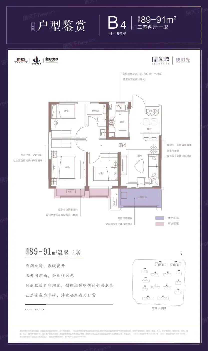 2️⃣【户型层】89㎡三房飘窗能改咖啡角,但厨房空间像被咬过一口的瑞士卷