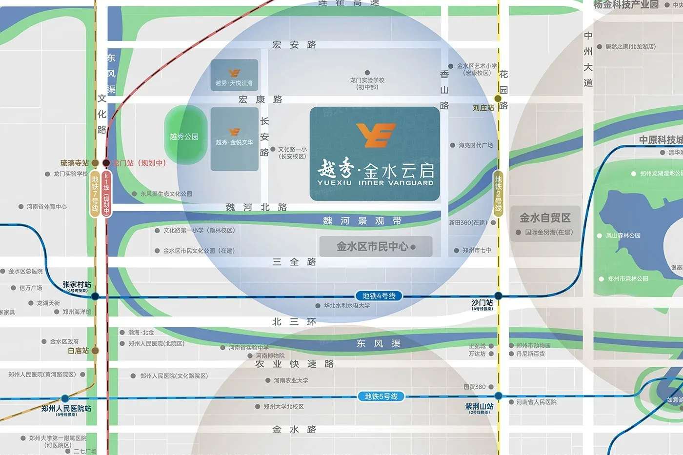 【首段】越秀·金水云启最新效果图释出!🎉 这次曝光的11张图片涵盖下沉庭院、会所、建筑外立面等核心场景,第四代住宅设计理念肉眼可见✨ 其中下沉庭院效果图以层次感绿植搭配休憩空间,贾鲁河生态资源与项目联动效果吸睛🌿 区位图清晰标注香山路与魏河北路交汇处,周边在建新田360广场及龙门实验学校(初中部)等配套,属地铁沿线项目,通勤便利度拉满🚇