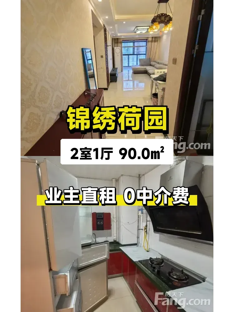 标题:自家锦绣荷园90平两房出租,南北通透只要1000/月✨