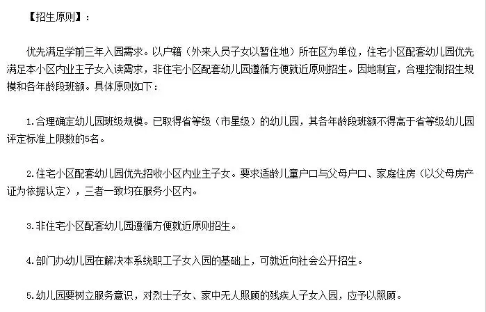 ÓÅÏÈÂú×ãѧǰÈýÄêÈëÔ°ÐèÇó¡£ÒÔ»§¼®£¨ÍâÀ´ÈËÔ±×ÓÅ®ÒÔÔÝסµØ£©ËùÔÚÇøÎªµ¥Î»£¬×¡Õ¬Ð¡ÇøÅäÌ×Ó×¶ùÔ°ÓÅÏÈÂú×ã±¾Ð¡ÇøÄÚÒµÖ÷×ÓÅ®Èë¶ÁÐèÇ󣬷Ç×¡Õ¬Ð¡ÇøÅäÌ×Ó×¶ùÔ°×ñÑ·½±ã¾Í½üÔÔòÕÐÉú¡£ÒòµØÖÆÒË£¬ºÏÀí¿ØÖÆÕÐÉú¹æÄ£ºÍ¸÷ÄêÁä¶Î°à¶î¡£¾ßÌåÔÔòÈçÏ£º ¡¡¡¡1.ºÏÀíÈ·¶¨Ó×¶ùÔ°°à¼¶¹æÄ£¡£ÒÑÈ¡µÃÊ¡µÈ¼¶£¨ÊÐÐǼ¶£©µÄÓ×¶ùÔ°£¬Æä¸÷ÄêÁä¶Î°à¶î²»µÃ¸ßÓÚÊ¡µÈ¼¶Ó×¶ùÔ°ÆÀ¶¨±ê×¼ÉÏÏÞÊýµÄ5Ãû¡£ ¡¡¡¡2.×¡Õ¬Ð¡ÇøÅäÌ×Ó×¶ùÔ°ÓÅÏÈÕÐÊÕÐ¡ÇøÄÚÒµÖ÷×ÓÅ®¡£ÒªÇóÊÊÁä¶ùͯ»§¿ÚÓ븸ĸ»§¿Ú¡¢¼Òͥס·¿£¨ÒÔ¸¸Ä¸·¿²ú֤ΪÒÀ¾ÝÈ϶¨£©£¬ÈýÕßÒ»Ö¾ùÔÚ·þÎñÐ¡ÇøÄÚ¡£ ¡¡¡¡3.·Ç×¡Õ¬Ð¡ÇøÅäÌ×Ó×¶ùÔ°×ñÑ·½±ã¾Í½üÔÔòÕÐÉú¡£ ¡¡¡¡4.²¿ÃŰìÓ×¶ùÔ°ÔÚ½â¾ö±¾ÏµÍ³Ö°¹¤×ÓÅ®ÈëÔ°µÄ»ù´¡ÉÏ£¬¿É¾Í½üÏòÉç»á¹«¿ªÕÐÉú¡£ ¡¡¡¡5.Ó×¶ùÔ°ÒªÊ÷Á¢·þÎñÒâʶ£¬¶ÔÁÒÊ¿×ÓÅ®¡¢¼ÒÖÐÎÞÈËÕչ˵IJм²ÈË×ÓÅ®ÈëÔ°£¬Ó¦ÓèÒÔÕչˡ£ ¡¡¡¡ ¡¡¡¡¡¾±¨Ãû²ÄÁÏ¡¿£º ¡¡¡¡»§¿ÚÔ¼þ¡¢¶ùͯÌå¼ì±íÔ¼þ£¨½¨ÒéÔÚº¢×ÓÈë԰ǰ1¸öÔÂÈ¥Ìå¼ì£©¡¢Ô¤·À½ÓÖÖ¿¨¸´Ó¡¼þ¡¢¹¤×÷Ö¤Ô¼þ¼°¸´Ó¡¼þ¡£