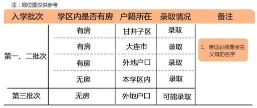 四、 准备材料 1. 报名时请父母亲自带孩子到学校。 2. 本市户籍适龄儿童报名时,须凭学生家长的身份证、户口簿、房产证、学生出生证及预防接种证等证件原件以及户口簿学生一页的复印件办理入学。因贷款购房暂无房产证的,须提供学生家长购房合同、商品房交款专用收据、贷款保险单、完税证等原件并依据房管部门开具的学生家长房屋登记信息查询结果,在实际入住后办理入学。无房产证租赁房屋者,须提供房管部门开具的学生家长房屋登记信息查询结果和《房屋租赁备案表》。 3. 其他县市区和外地户籍,除以上材料外,还须提供有效的《大连市居住证》、在连就业证明(如营业执照、劳动局用工合同)等家长在本市工作或生活的相关证明材料原件。 4. 父母户籍不在一起或户主不是孩子父母的,请家长准备好结婚证、孩子出生证等材料备查。
