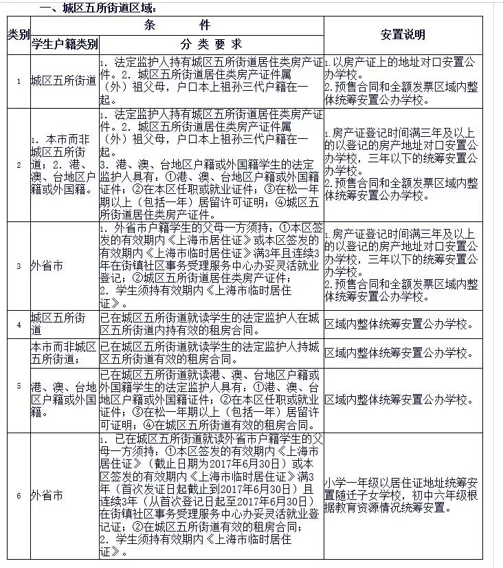 2017年松江区义务教育阶段学校招生入学工作实施办法 索取号:SC4302007-2017-001 发布日期:2017-02-24 16:02:00 -------------------------------------------------------------------------------- 沪松教基〔2017〕23号 各镇(街道)社事科(教委),中小学(含九年一贯制学校、民办学校、随迁子女小学)、教育考试中心、民教服务中心、教育学院: 根据《中华人民共和国义务教育法》、《中华人民共和国民办教育促进法》、《上海市未成年人保护条例》、《上海市政府信息公开规定》等法律法规,以及《上海市教育委员会关于2017年本市义务教育阶段学校招生入学工作的实施意见》(沪教委基〔2017〕2号),结合本区实际,制定《2017年松江区义务教育阶段学校招生入学工作实施办法》。具体如下: 一、指导思想和原则 (一)坚持以国家和上海市的有关法律法规为依据,以促进义务教育优质均衡发展、办好每一所学校为目标,以构建面向每一位适龄儿童的教育服务体系、切实维护中小学生的合法权益、规范学校办学行为为原则,依法实施义务教育阶段学校招生入学工作。 (二)按照公办学校免试就近入学原则和本区的实际生源、学校资源分布等情况,制定本区义务教育阶段招生相关政策,确定招生事业计划、划定招生区域,在规定时间内完成招生工作,确保符合条件的适龄儿童接受义务教育。 (三)继续应用“上海市义务教育入学报名系统” (www.shrxbm.cn),实施义务教育阶段招生入学工作规范管理,严禁义务教育阶段学校在招生计划之外自行招收学生,严禁在入学报名系统外招生,严禁擅自跨区域招生。 (四)坚持公开、公平、公正的原则,及时向社会公布义务教育阶段学校招生入学工作的相关信息,加强与中小学校、家庭、社区之间的沟通交流。 通过区教育信息网、学校网站、“校园开放日”、社区张贴《招生告示》等形式,向辖区内适龄儿童及家长告知招生工作政策、入学信息登记时间、地点,以及入学验证时间、地点与审核所需携带的各种证件。按时向幼儿园升入小学的适龄幼儿发放入学信息登记表,向小学升入初中的学生发放入学告知书,作为入学的凭证。 (五)义务教育阶段学校应按照区教育局确定的就近入学招生范围和招生计划安排适龄儿童入学。严禁举办各类重点班、实验班、特色班。严禁以任何形式进行文化测试选拔并按照测试成绩分班。严禁将招生入学工作与奥数成绩、英语星级考等各类学科竞赛、等级考证书挂钩。严禁以竞赛、等级考证书作为选拔和录取学生的依据。义务教育阶段学校应当接收具有接受普通教育能力的残疾适龄儿童随班就读。 二、小学阶段招生 (一)入学信息登记。区教育考试中心、教育信息中心根据上海市义务教育招生入学工作要求,切实做好人员培训、设施设备配备和网络畅通等保障工作,各信息登记点合理安排相应的工作人员,确保适龄儿童入学信息登记工作顺利进行。 2017年小学招生入学对象为:2010年9月1日―2011年8月31日出生,年满6周岁的儿童,残疾儿童可适当推迟一年入学。 2月24日前,家长须对幼儿在读幼儿园提供的相关人口信息、灵活就业信息进行比对确认,如与实际情况不符,应到有关部门补办或更正信息。符合入学条件的非本市户籍适龄儿童所持的《上海市临时居住证》上的实际居住地址,应与父母所持居住证(或临时居住证)上的实际居住地址相一致。 4月8日―4月23日,在园适龄儿童家长在幼儿园登记孩子入学信息,获取小学入学信息登记表;未在本市入园的适龄儿童家长应在本区指定地点登记孩子入学信息,获取小学入学信息登记表。4月23日为本市小学入学信息登记截止日,之后不得更改入学信息。 (二)合理统筹安排入学。切实做好本区适龄儿童户籍与居住情况的信息统计工作。依据生源分布情况,结合本区教育资源,按照“免试就近入学”原则,合理确定各校招生计划与招生区域,确保符合条件的适龄儿童接受义务教育。具体内容见附件1《2017年松江区义务教育阶段招生信息分类安置要求》。 做好跨区县本市户籍“人户分离”适龄儿童居住地登记入学工作。具有上海市户籍的适龄儿童确有困难不能在户籍地入学的,凭居住地街镇社区事务受理服务中心出具的《本市户籍人户分离人员居住登记申请回执》(截止日为2017年4月23日),到区教育局指定地点申请居住地登记入学。区教育考试中心结合本区实际对跨区县“人户分离”的适龄儿童在区域内统筹安置。 公办学校应按照教育局确定的就近入学招生范围和招生计划安排适龄儿童入学。不得拒绝接收具有接受普通教育能力的残疾适龄儿童随班就读。听力和视力残疾的适龄儿童到区教育考试中心进行信息登记,经区教育局审核后,安排进入相应的特殊教育学校就读。 (三)随迁子女招生。区教育局根据有关要求,做好进城务工人员随迁子女招生入学工作,加强对随迁子女入学条件的审核。 根据《上海市人民政府办公厅转发市教委等四部门关于来沪人员随迁子女就读本市各级各类学校实施意见的通知》(沪府办发〔2013〕73号)要求,2017年,进城务工人员适龄随迁子女需在本市接受义务教育的,适龄儿童须持有效期内《上海市临时居住证》,父母一方须持有效期内《上海市居住证》;或者父母一方持有效期内《上海市临时居住证》满3年(从首次发证日起至2017年6月30日),且连续3年(从首次登记日